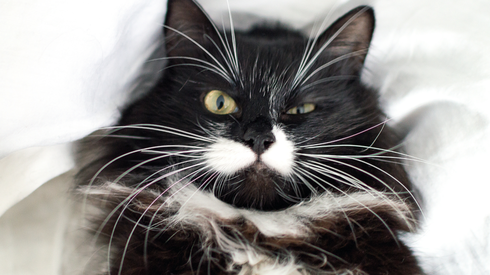 Deze kat is net zo verbaasd over zijn snor als wij. -
