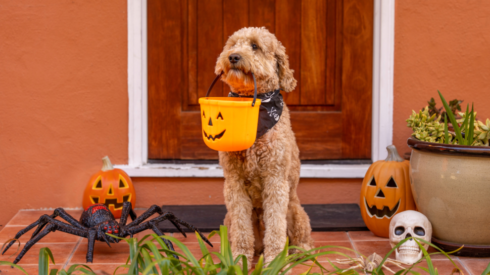 A lot of Halloween candy is dangerous for animals. Chocolate and xylitol candy are toxic to dogs and cats. Keep candy out of reach and choose pet-friendly snacks or bake your own pumpkin cookies.