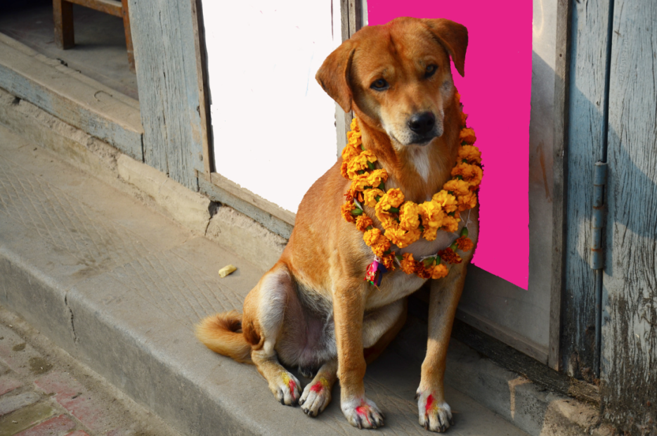 Tihar, also known as Deepawali, is an important Nepali festival that celebrates the victory of light over darkness. Each day is dedicated to a different creature or symbol. The second day - Kukur Tihar - is dedicated to dogs, as a sign of gratitude for their loyalty and protection.